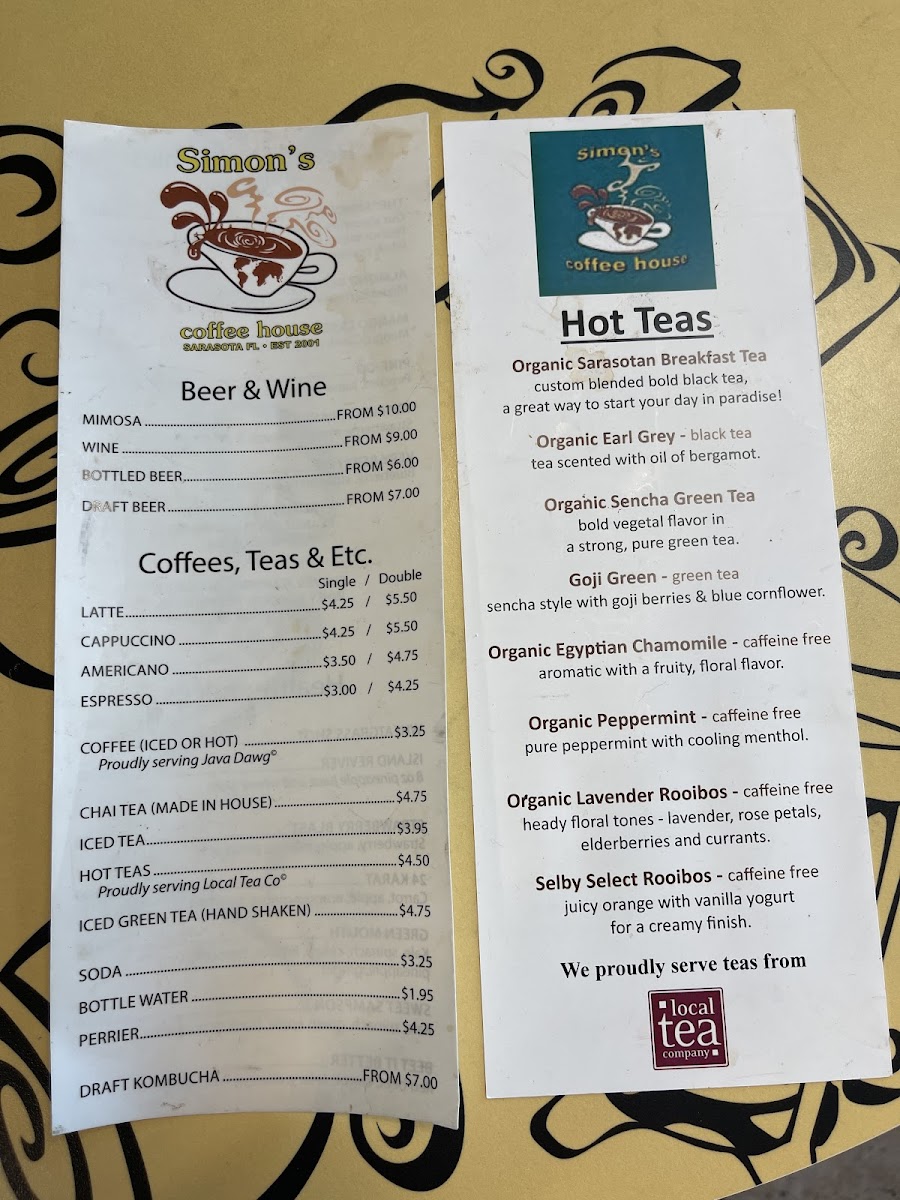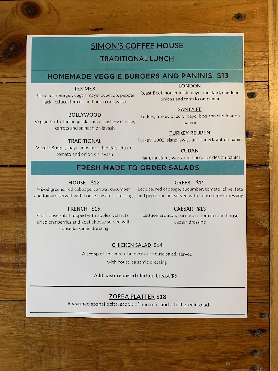 Simon's Coffee House Menu